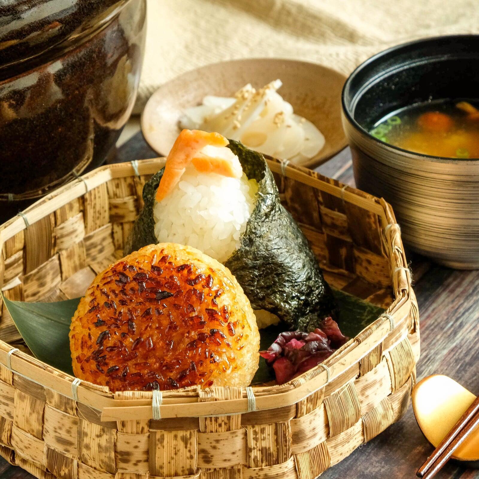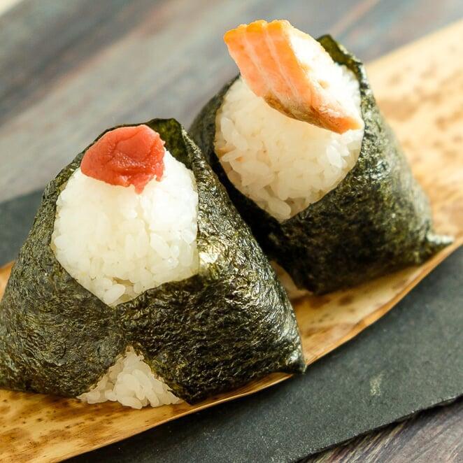 Make 3 recipes of Onigiri with premium ingredients, following traditional techniques